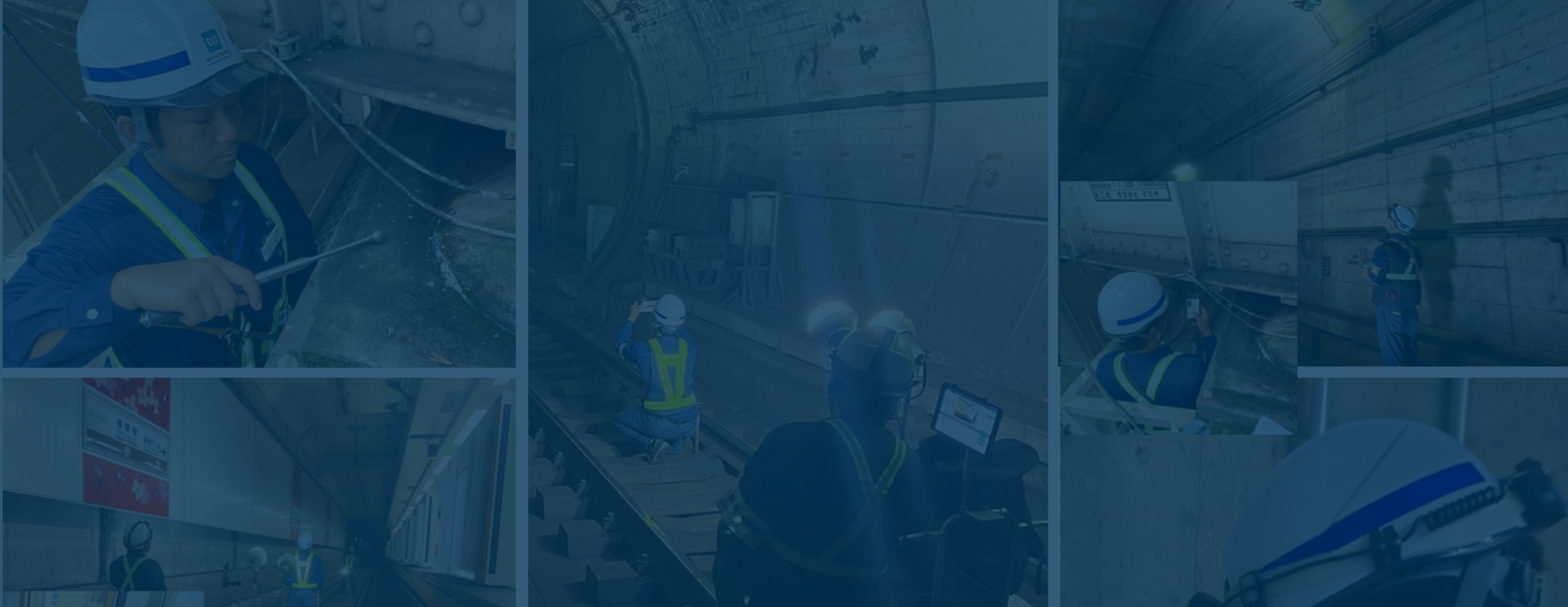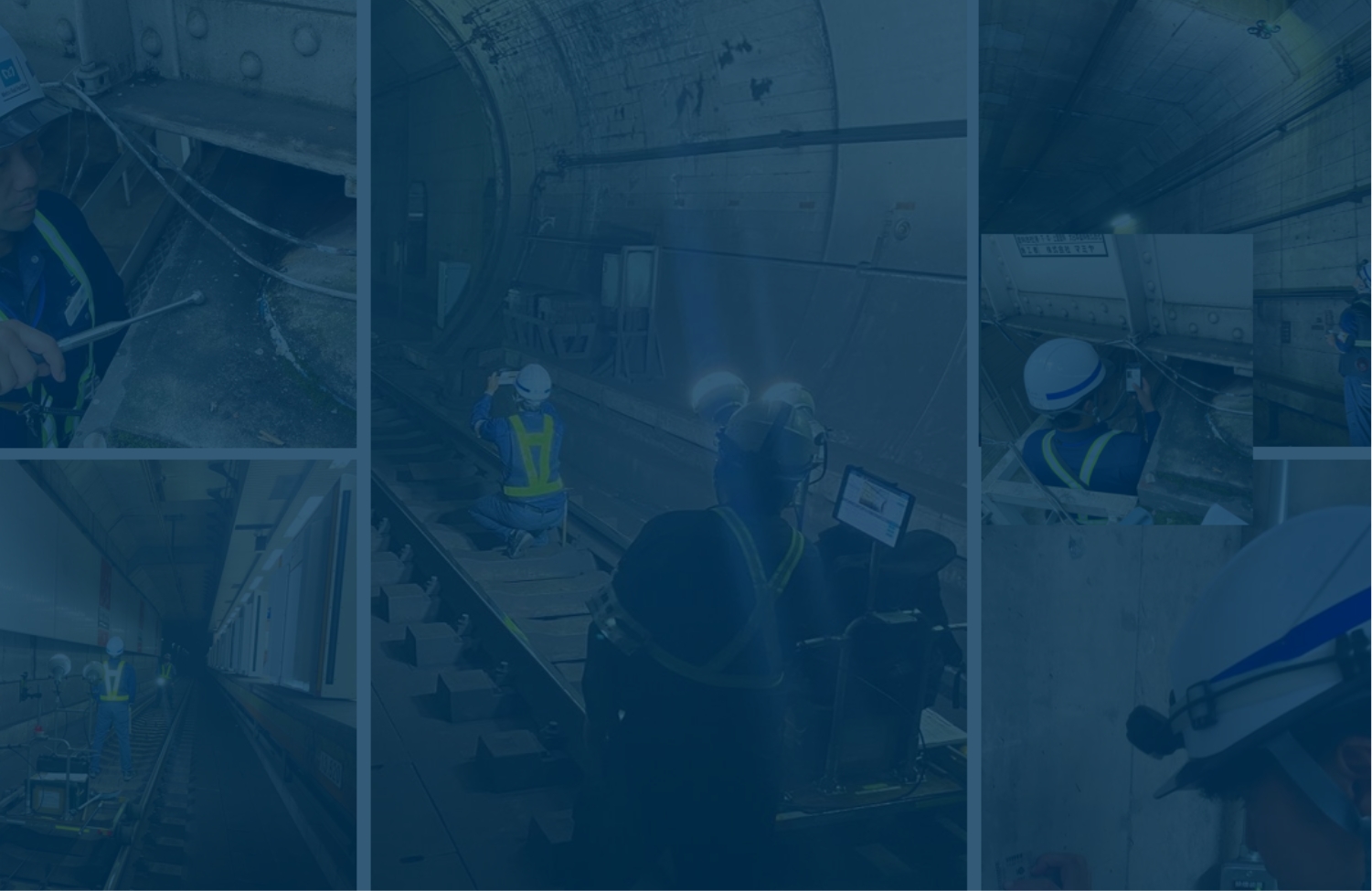 補強補修工事監理トンネル構造物に求められる耐荷性能や使用性能を図るため、内壁断面を増厚する補強及び目地漏水を止水する補修が適切か監理しています。施工は営業線電車の終電から始発までの短時間に終える必要があり、工事従事者の安全確保を最優先した施工が要求されます。