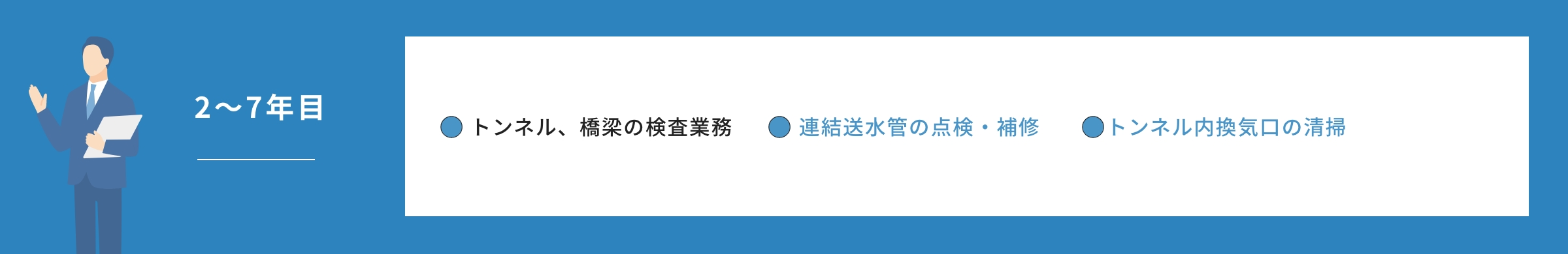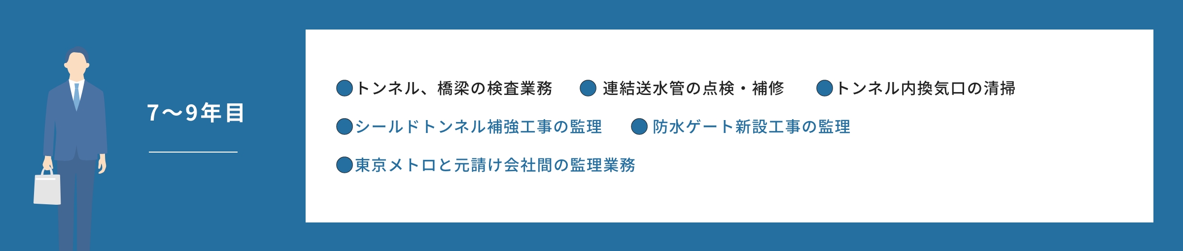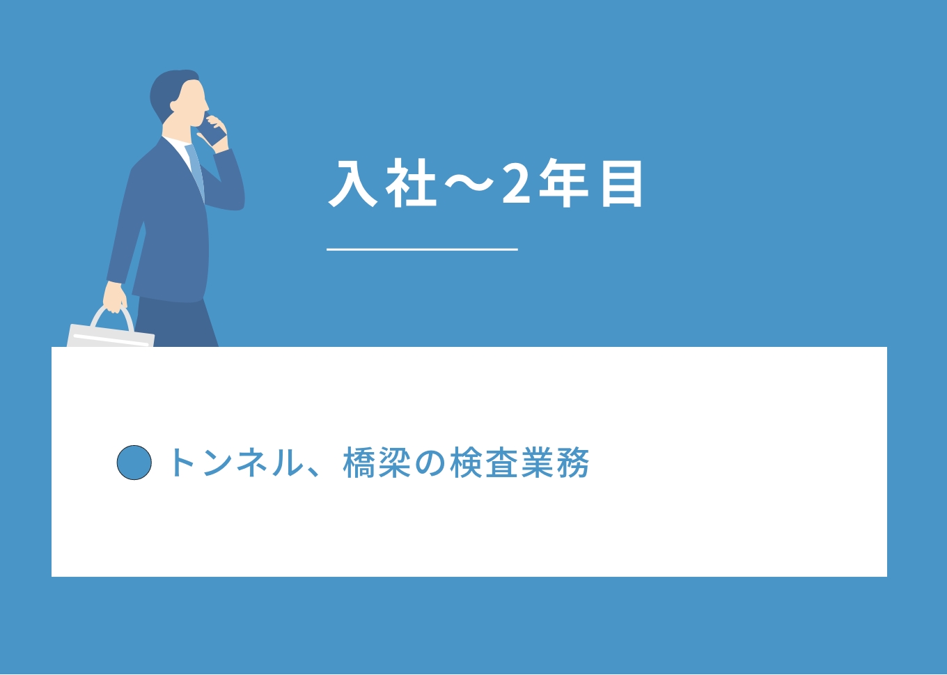 構造物検査、保守点検、設計工事の設計/監理などの業務に携われます。