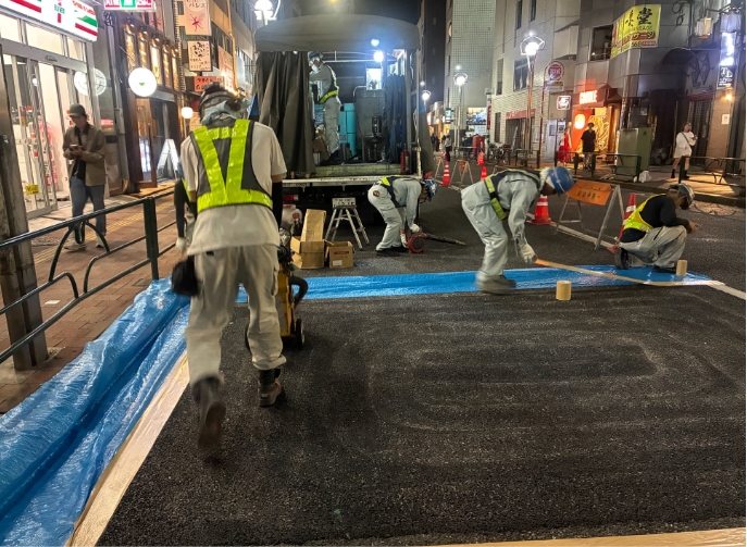 地下鉄全線の地下鉄構築構造工事に起因した陥没箇所を試掘調査を実施し、原因を特定して速やかに仮復旧及び本復旧を行う工事です。道路陥没は突発的な事象となるため迅速な対応と、再発防止のための適切な原因究明と対策が重要となります。特に地下鉄は都市部のため、地下埋設物が複雑に入り組んでいるため、関係機関との綿密な打ち合わせと連携が不可欠となる工事になります。また、道路規制を日々設置しての施工になるため、第三者優先また、安全に心がけ施工を実施しています。