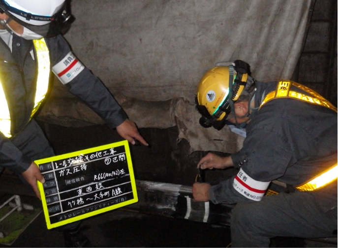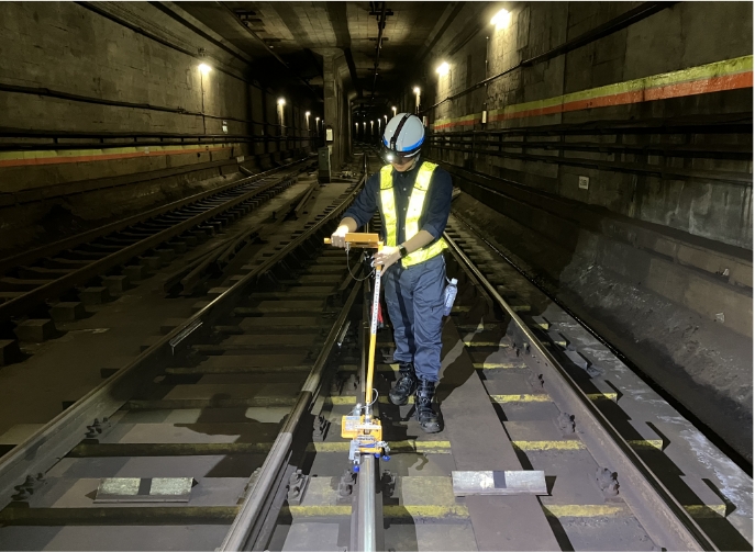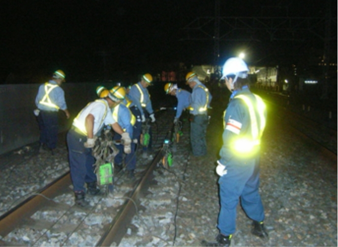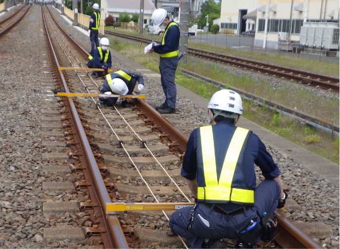 交換予定のレールの測定や材料の数量調査及び軌道を