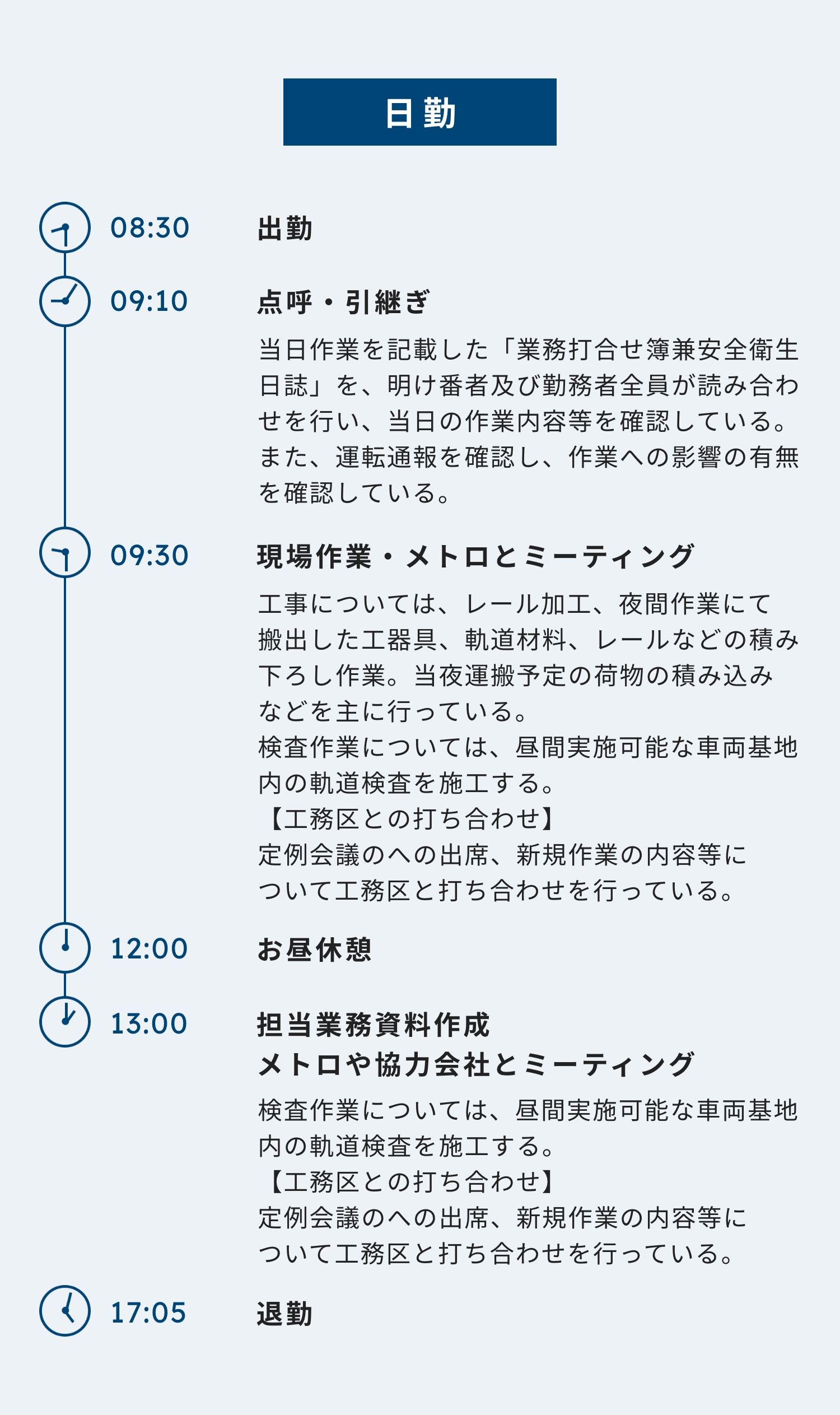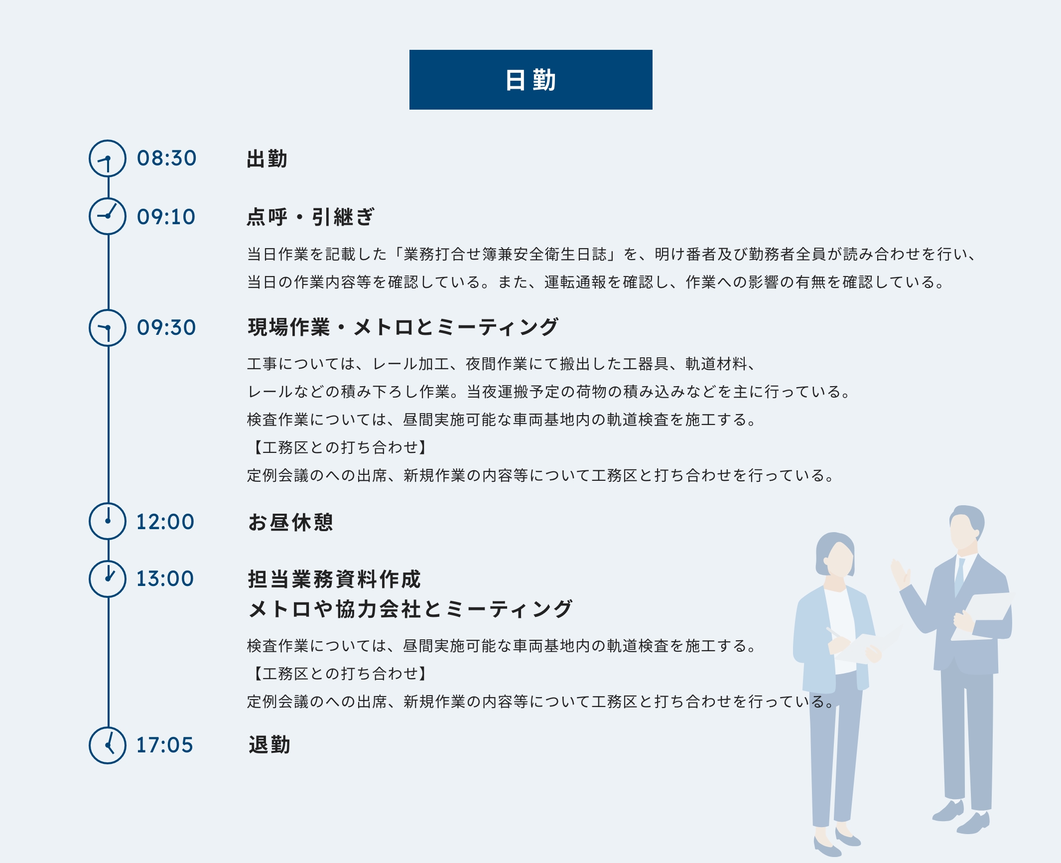 軌道(線路)検査業務、軌道の補修工事などに携われます。